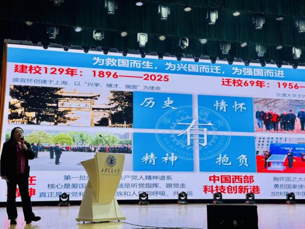 贺进对学籍管理规定进行了系统解读,并将校史精神与学业规划深度融合。从1896年南洋公学“自强必先储才,储才必先兴学”的创校初衷,到1956年学校主体西迁“扎根西部、服务国家”的使命担当,再到习近平总书记来校考察时指出“西迁精神的核心是爱国主义,精髓是听党指挥跟党走,与党和国家、与民族和人民同呼吸、共命运”,西安交通大学始终秉持“起点高、要求严、基础厚、重实践”的办学传统,并通过具体的学籍管理制度得以落实,成为学生学业发展的重要指引。此外,她结合个人求学经历,建议新生避免“盲目刷题”,积极参与学科交叉活动,在实践中深化专业认知。