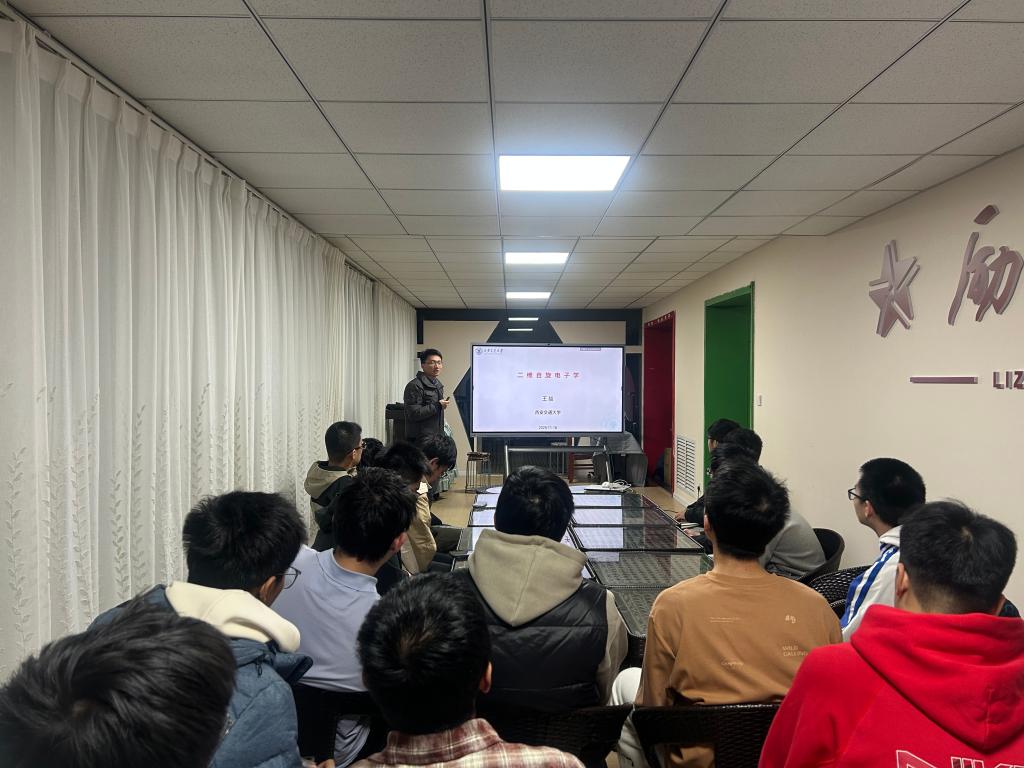 “二维自旋电子学是未来低功耗信息存储与处理的关键技术之一,不仅承载着基础科学研究的重大意义,未来也将在逻辑计算、量子计算和光电子学等多个领域发挥重要作用,具有广阔应用前景。”王喆教授以通俗易懂的语言拆解了复杂的量子物理概念,从二维材料的特性、自旋电子的基本原理入手,逐步深入讲解该领域的前沿研究动态、核心技术难题及未来发展趋势。他结合自身科研经历,分享了项目攻关过程中的关键思路与实验心得,用生动案例展现了科研工作的严谨性与创新性,让在场学子对尖端科研有了更直观、深刻的认知。
