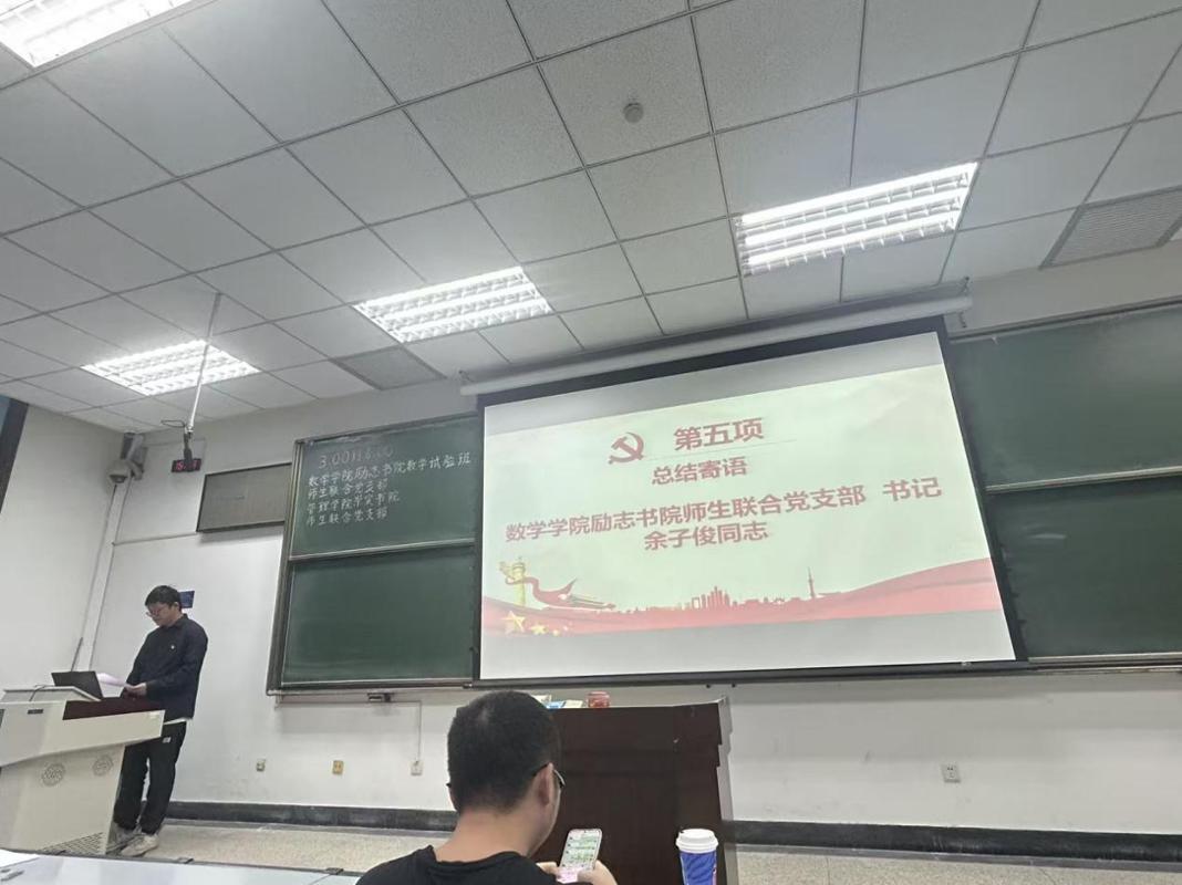 数学学院励志书院数学试验班师生联合党支部书记余子俊在总结中强调,要善于运用数学思维提升科学决策水平,以精准、严谨的逻辑自觉践行党的战略部署;要充分发挥管理智慧凝聚共识、汇聚合力,永葆党组织的先进性与纯洁性。他勉励全体同志深入学习贯彻党的二十届四中全会精神,积极推动学科交叉融合,在潜心学习与科研攻关中增强本领,在服务国家与社会的实践中彰显担当,为推进中国式现代化建设贡献青春力量。